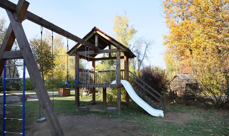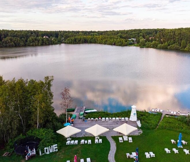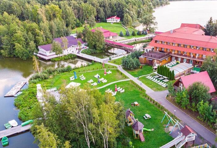 На территории есть спа-комплекс, сауна, хаммам, русская баня, бассейн, ресторан, кафе, детская игровая площадка и мини-зоопарк. Летом здесь оборудованный песчаный пляж, водные аттракционы и прогулки на лодках, а зимой — каток с музыкой и огнями, где можно взять напрокат коньки, лыжи, санки, ледянки и снегоходы. Для детей есть детские площадки и прокат спортинвентаря. В любое время года на красивом берегу озера можно порыбачить. На территории есть несколько павильонов с принадлежностями для барбекю.
