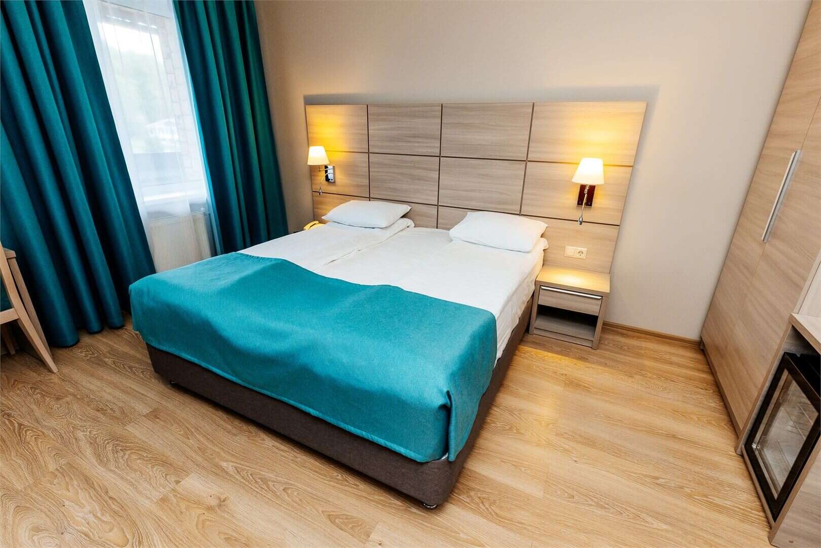 -Тариф Полный пансион в гостиничных номерах: проживание, 3-х разовое питание по системе «шведский стол» с включённым ассортиментом алкогольных и безалкогольных напитков или сет-меню (в зависимости от загрузки отеля),посещение AQUA-зоны (сеанс/день).