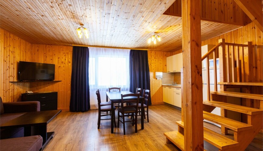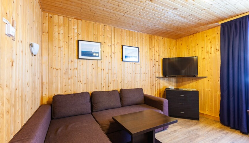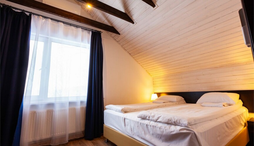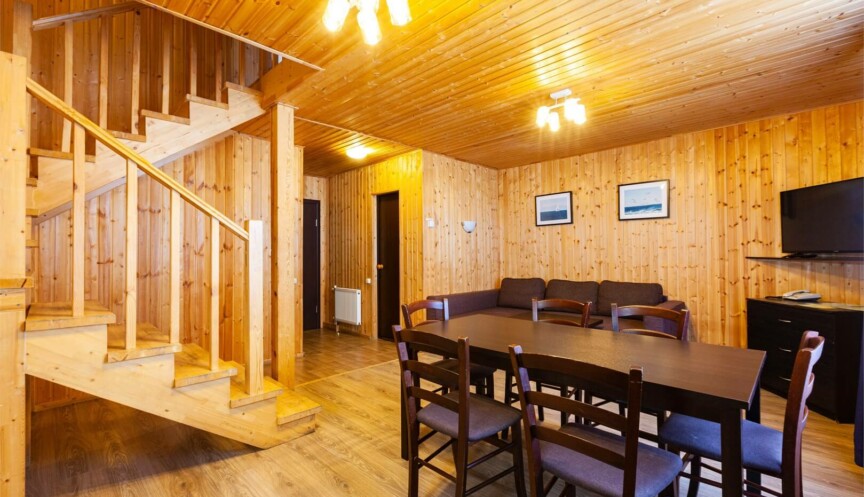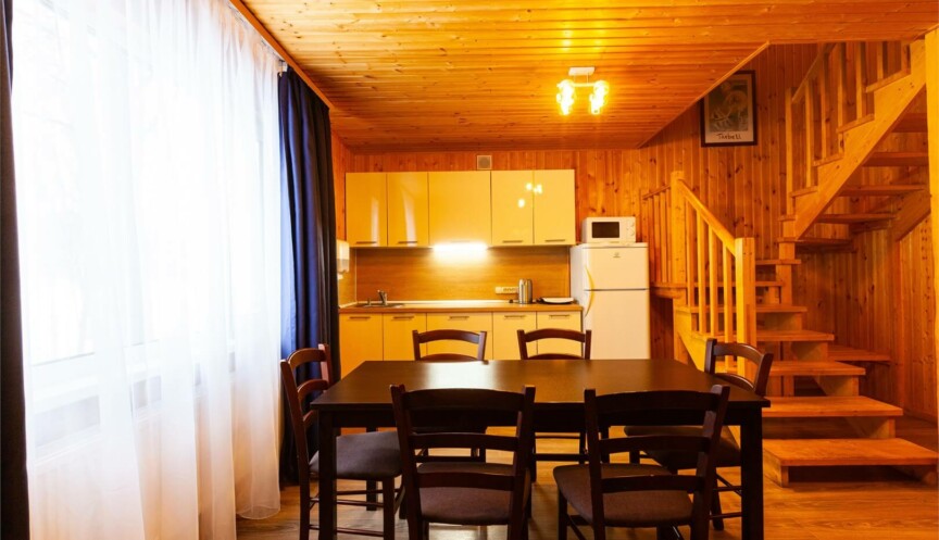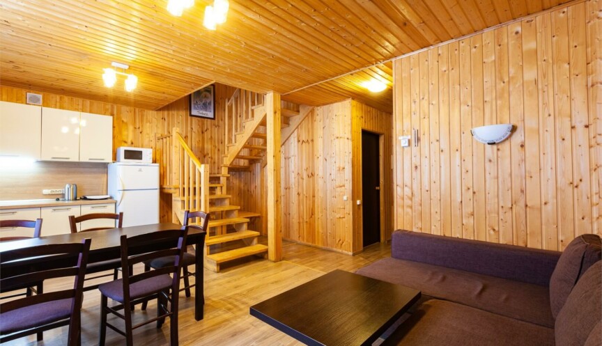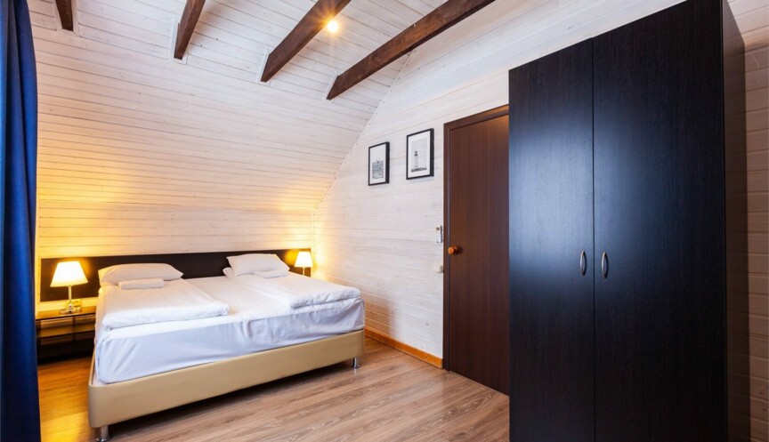 Двухэтажные коттеджи в скандинавском стиле (год постройки 2020). Уютные коттеджи оборудованы для комфортного отдыха 6 гостей с возможностью размещения до 2-х гостей на дополнительных спальных местах; включают гостиную с мягким угловым диваном (раздвижной), объединенную с функциональной кухонной зоной, три спальные комнаты, два санузла.