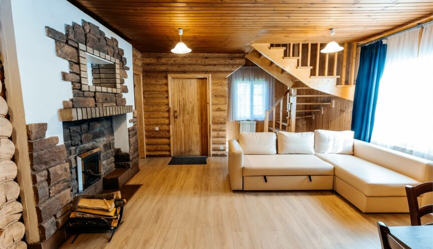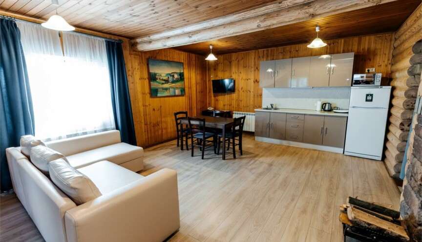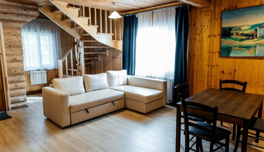 Современный коттедж с двумя спальнями, собственным камином, баней с кедровой купелью.