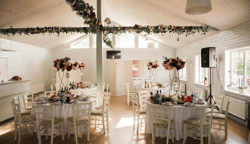 Ресторан на воде отличается продуманной планировкой с различными зонами для проведения крупных мероприятий от 40 до 150 человек. Зал оформлен в чистых, светлых тонах и имеет открытую веранду с видом на озеро.